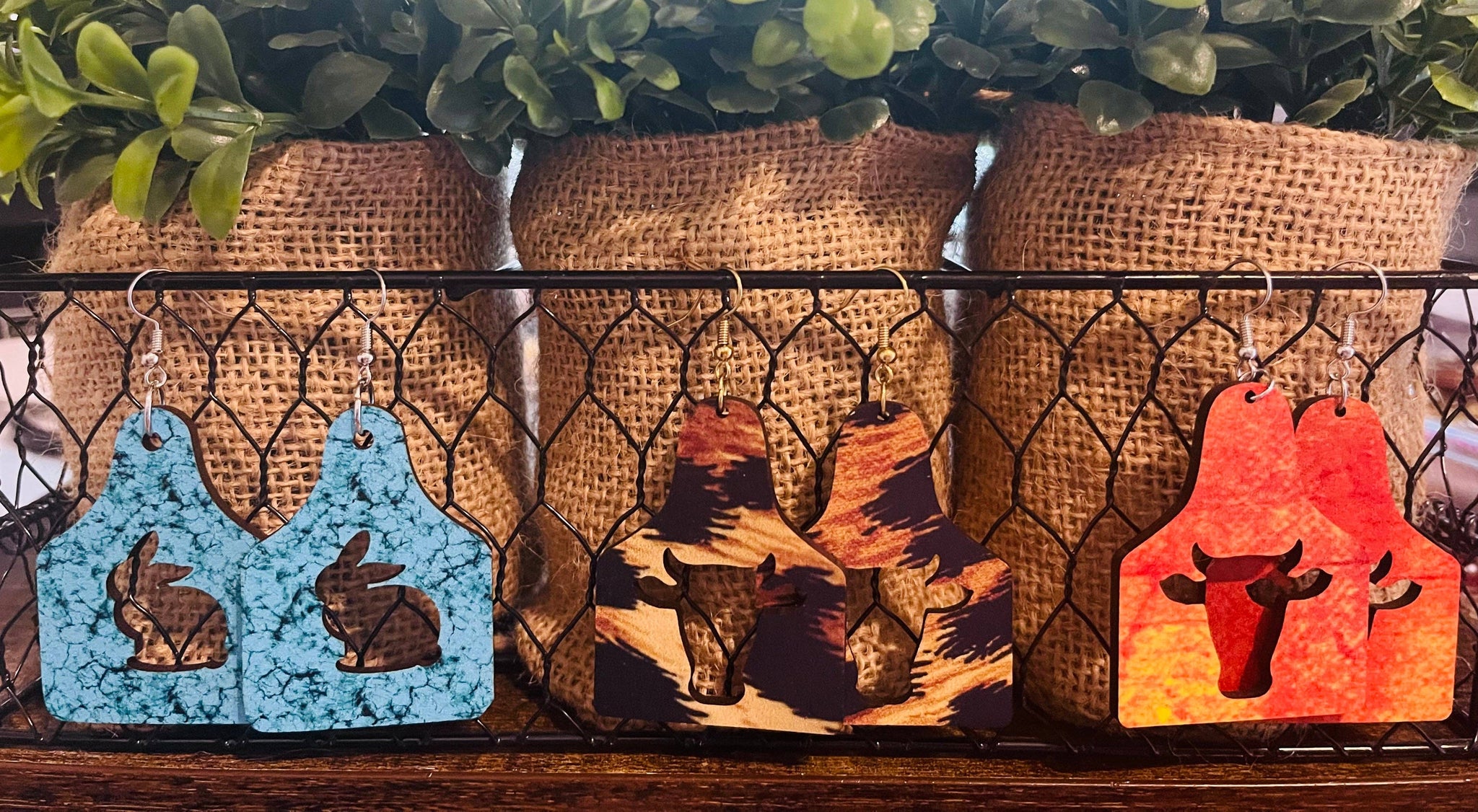 Southern Attitude Designs Inc - Show Tag Earrings: Turquoise Pig